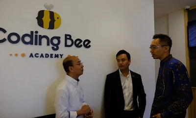 | ki-ka: Husen Halim (mitra Coding Bee Academy Surabaya), Eko Haripin (CEO dan Founder Coding Bee Academy) dan Bapak Raymond Murtihardjana (Area Representative Coding Bee Academy Surabaya) |